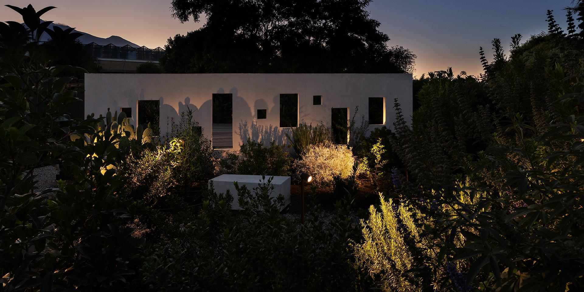 Eine Landschaft zu beleuchten bedeutet, Licht als Teil des Kontexts zu gestalten – als ein Element, das mit dem Grün, den Volumen und den Oberflächen interagiert und dabei Texturen und Farben hervorhebt.