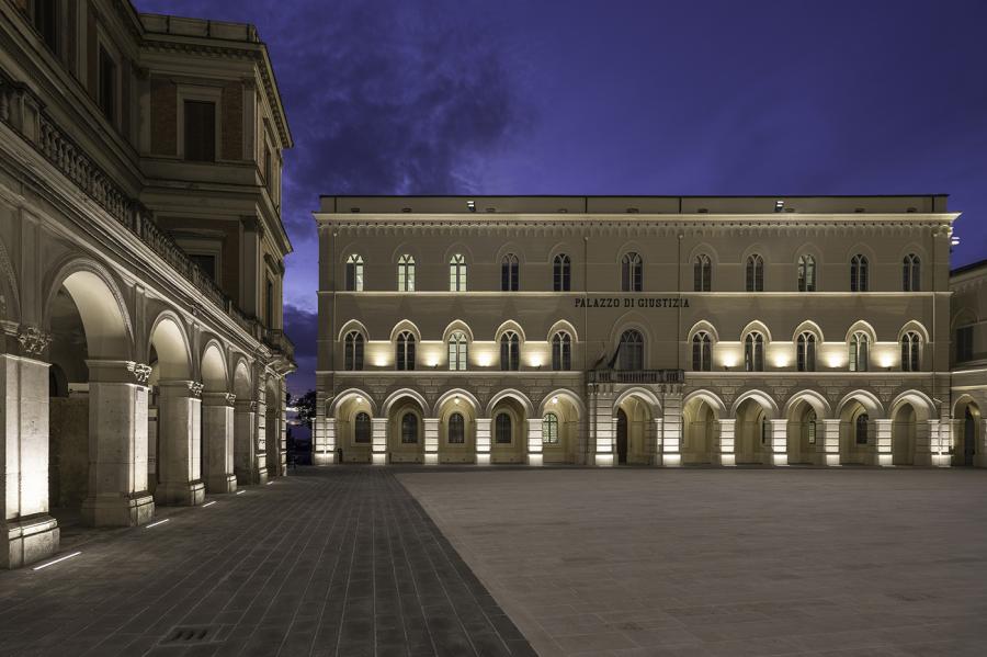 The lighting design for the square and the surrounding buildings uses Tago linear profiles recessed flush with the paving for the perimeter facades. This solution revitalises the urban space in every corner of the square, enhancing its stone materials and architectural details.