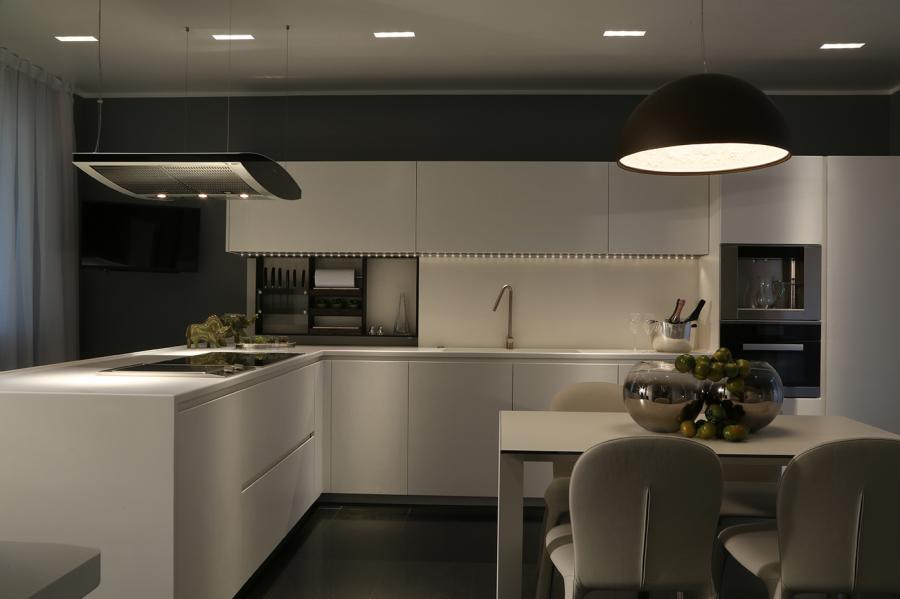A unique and exclusive home that stimulates the senses through innovative solutions and materials with a refined and elegant design. This is Casa Marniga, a Brescia residence that has undergone a renovation of the existing building. In it, functionality, art and contemporaneity shine out in every aspect, from those appealing to the senses of the inhabitants right through to the more technical and operational details of the building services and lighting. The lighting is the work of the interior designer Cristian Turra, who chose solutions by L&L Luce&Light to pick out particular details in the interior design, from the living area and the kitchen to the bedroom and the bathroom.