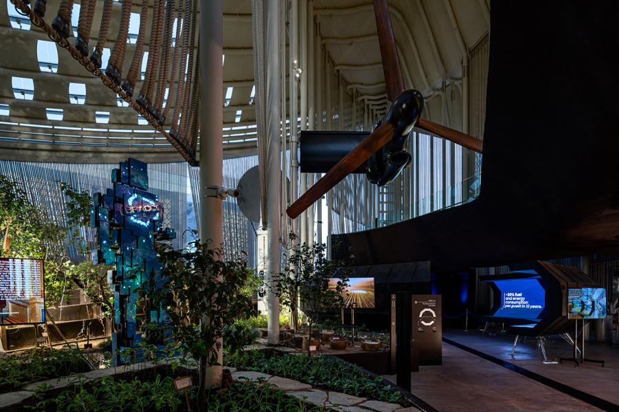 Il percorso espositivo si snoda attraverso ambienti e installazioni circondate da numerose e variegate specie vegetali che rendono omaggio alla biodiversità del paesaggio italiano e al ruolo delle piante nella lotta alla desertificazione. Come nel caso di Innovation Space, l’ambiente dedicato alle ultime frontiere della ricerca tecnologica italiana, il quale è stato immerso in un giardino di piante officinali e ospita diverse installazioni, ovvero simulazioni digitali del sole e della luna che sperimentano l’uso della luce artificiale per la fotosintesi e la vita delle piante coltivate.