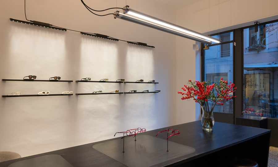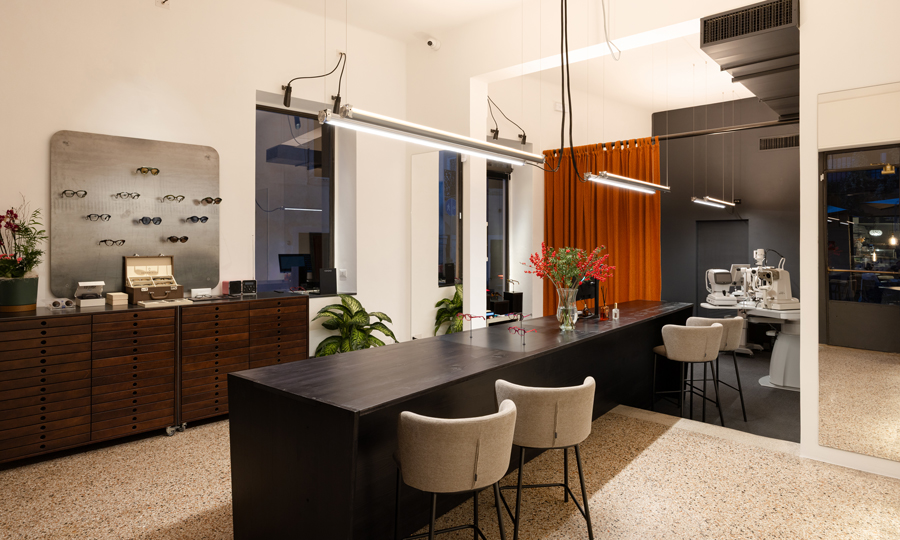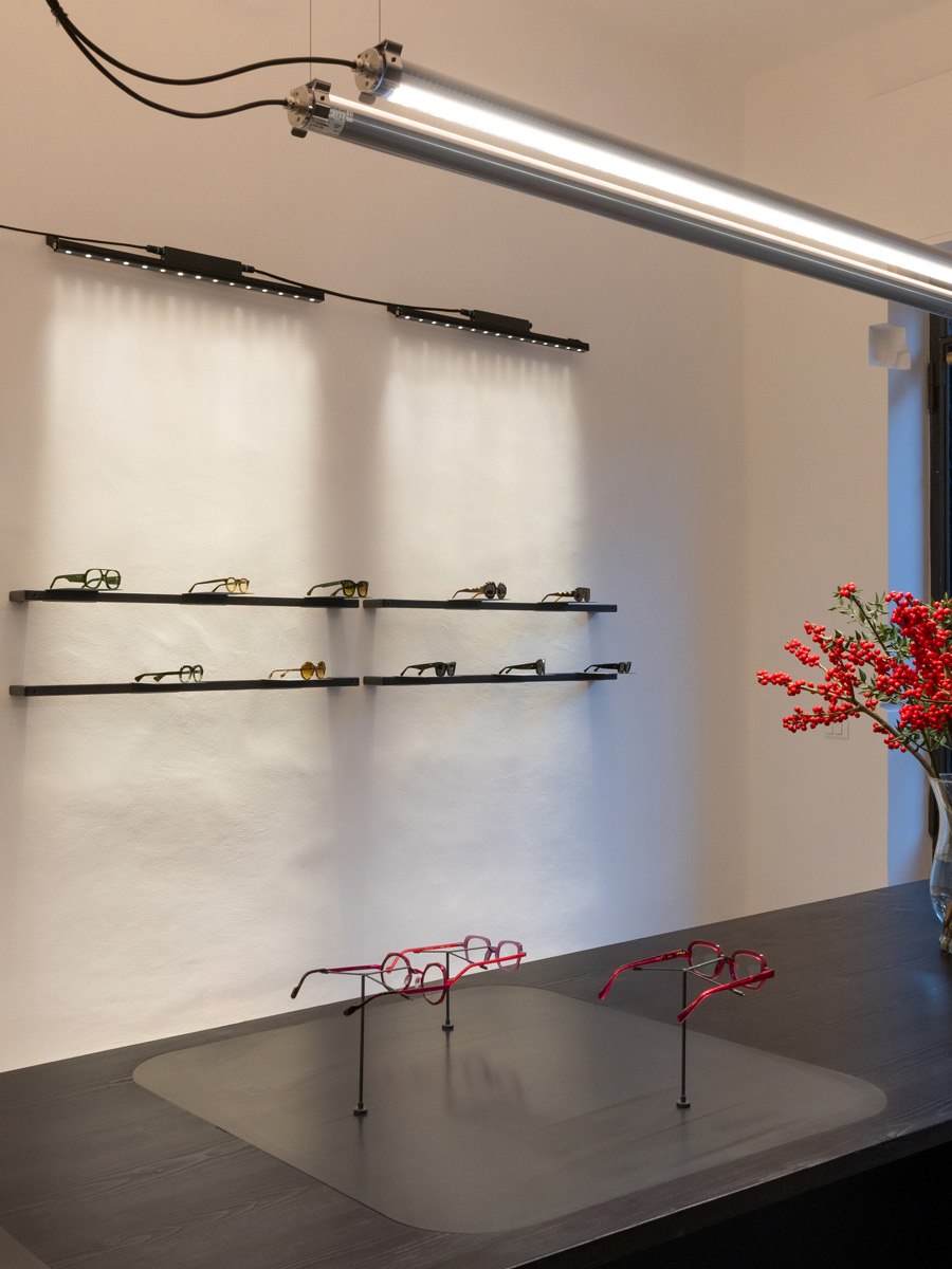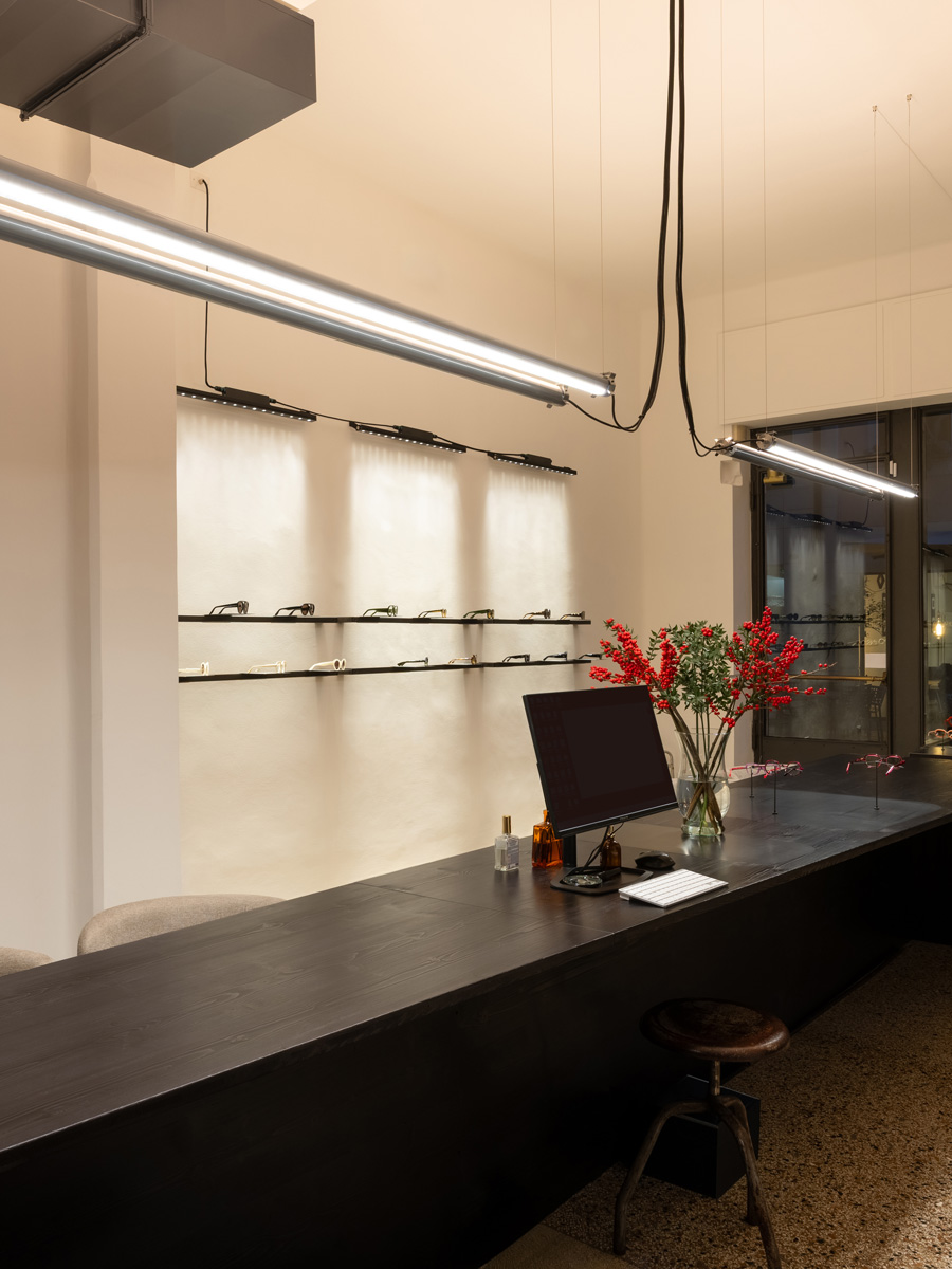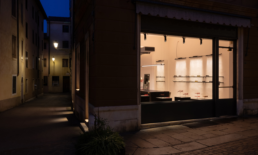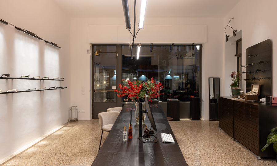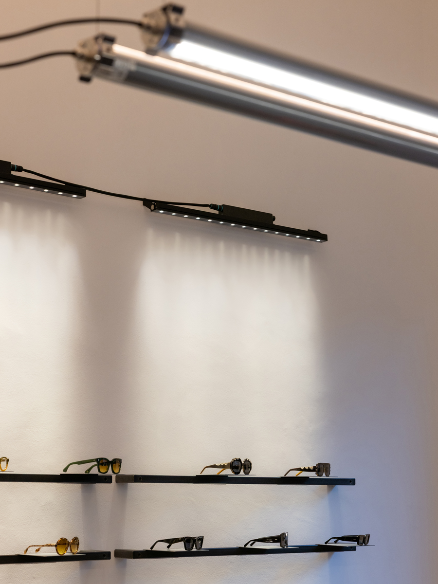Оптика Vistà optometria, расположенная в историческом центре Виченцы, демонстрирует продуманный подход к световому дизайну, где освещение играет центральную роль в формировании индустриальной эстетики пространства.